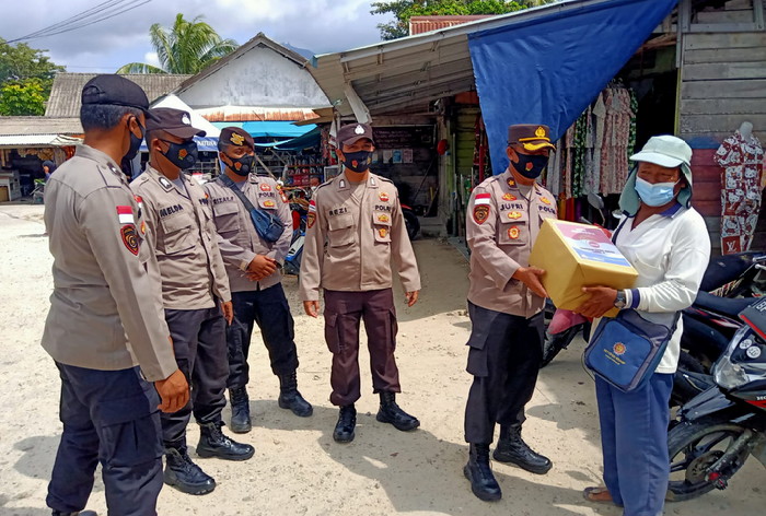 Bursakota.co.id, Natuna – Kapolres Natuna, melalui Kabag SDM Polres Natuna dan personil Polres Natuna menyambangi Pedagang dan masyarakat di sekitar Pasar Tradisional Ranai untuk memberikan bantuan paket sembako yang dimana saat ini di Kab. Natuna berlakukan PPKM MIKRO level 3, Selasa (27/07/2021).