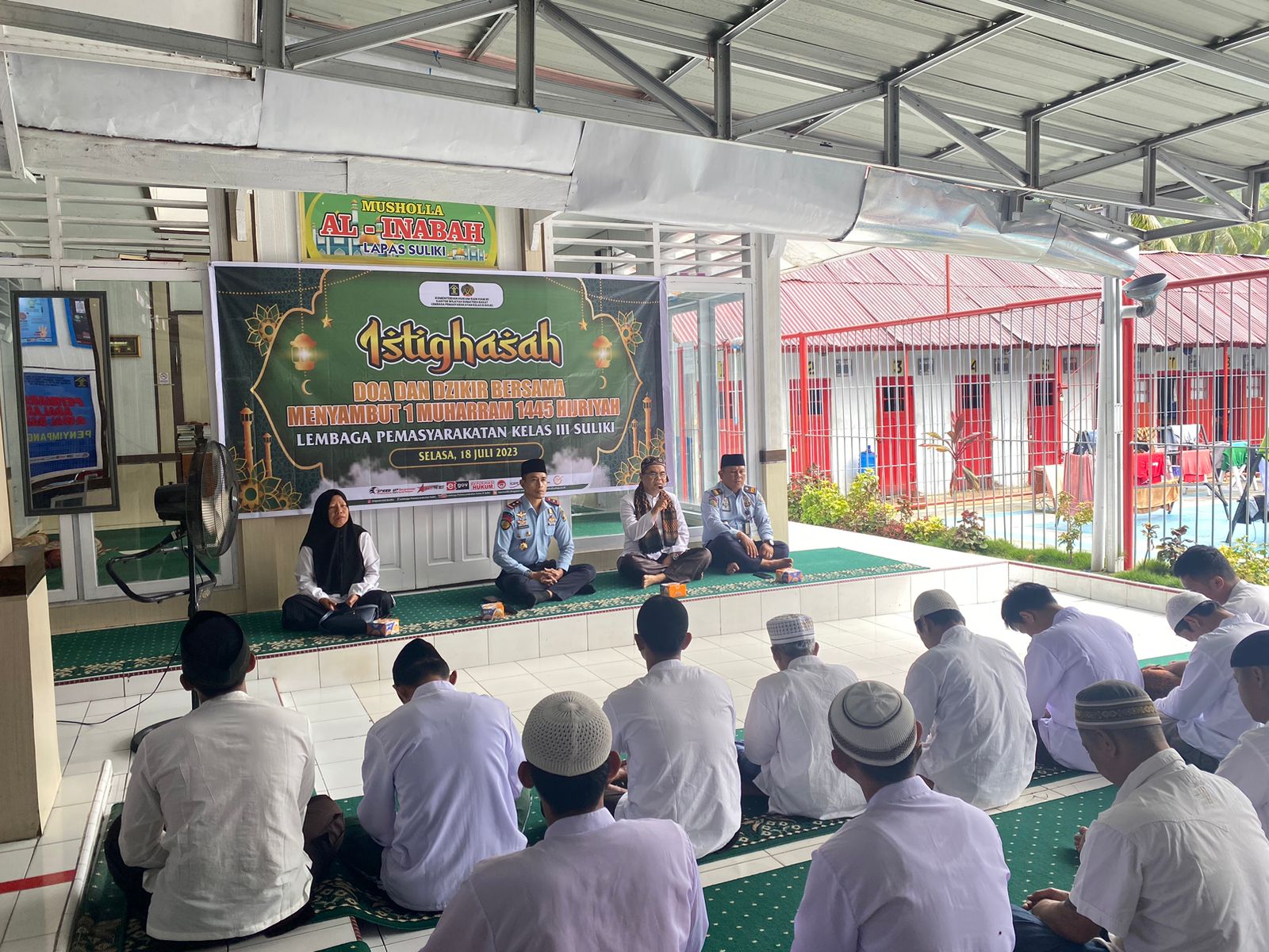 Kepala Lapas Kelas III Suliki Kamesworo mengatakan, acara Istigasah, zikir dan do’a bersama ini dalam rangka peringatan 1 muharram Tahun Baru Islam 1445 Hijriah.