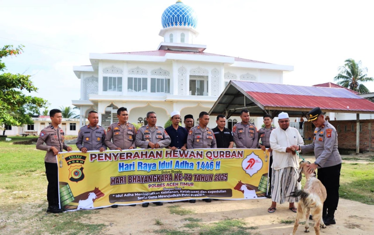 Kapolres Aceh Timur AKBP Irwan Kurniadi, S.I.K. menyebutkan, penyerahan hewan kurban ini merupakan bentuk keikhlasan dan pengabdian dari seluruh personel Polri Polres Aceh Timur kepada bangsa, negara dan masyarakat.