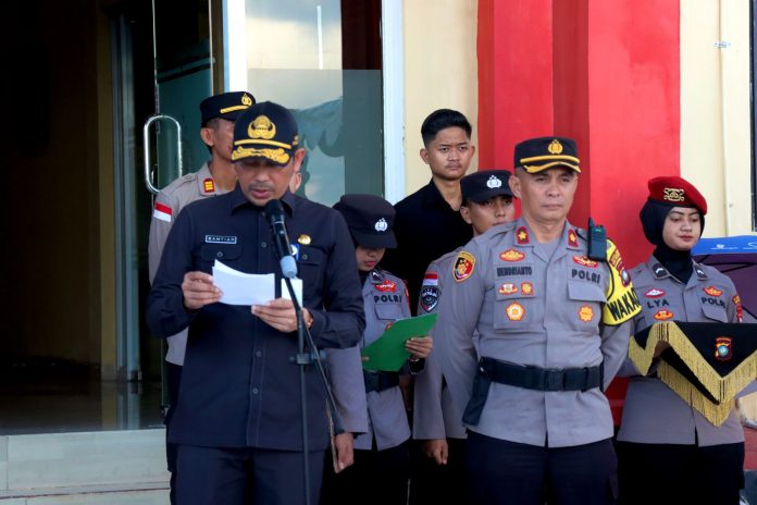 Sekretaris Daerah Kabupaten Kepulauan Anambas Sahtiar, di dampingi oleh Wakapolres Kepulauan Anambas, Kompol Hendrianto, S.H, M.H memimpin Apel Gelar Pasukan Operasi Ketupat dalam kesempatan ini menyampaikan amanat dari Kapolri Jenderal Polisi, Drs. Listyo Sigit Prabowo, M.Si menyampaikan pentingnya sinergi antara TNI-Polri dengan stakeholder terkait dalam rangka pengamanan mudik dan perayaan hari raya Idul Fitri 1445 H.