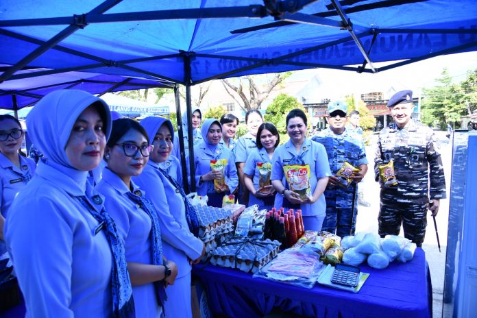 Komandan Lanud RSA Marsekal Pertama TNI Onesmus Gede Rai Aryadi, S.E., M.M., M.Han., bersama Ketua PIA Ardhya Garini Cabang 9/Daerah I, Ny. Marni Onesmus Pasaribu hadir langsung meninjau kegiatan bazar Ramadhan tersebut.