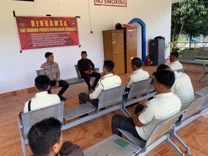 Bursakota.co.id, Anambas – Satuan Pembinaan Masyarakat (Sat Binmas) Polres Kepulauan Anambas kembali melaksanakan kegiatan rutin Pembinaan Keamanan Swakarsa (Binkamsa) terhadap Petugas Satuan Pengamanan ( Satpam ) di wilayah hukum Polres Kepulauan Anambas, Sabtu (11/05/2024).