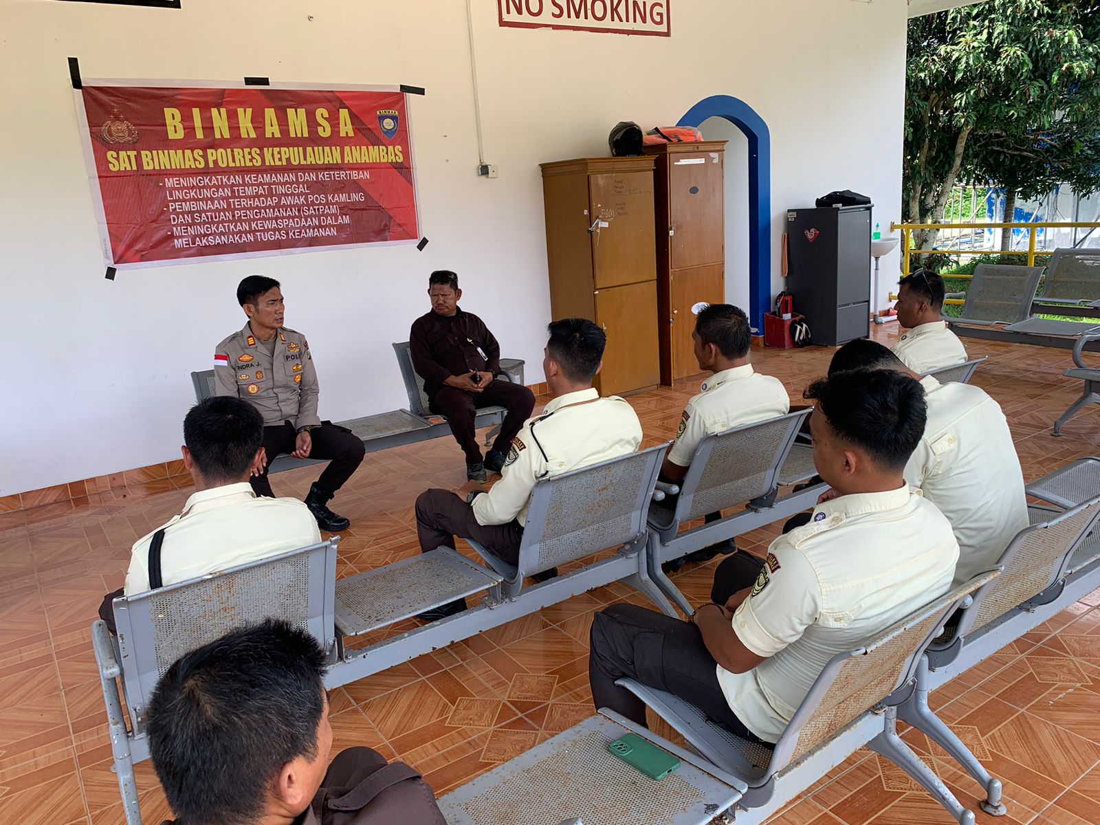 Ket Foto : Sat Binmas Polres Kepulauan Anambas kembali melaksanakan kegiatan rutin Pembinaan Keamanan Swakarsa (Binkamsa) terhadap Petugas Satuan Pengamanan ( Satpam ) di wilayah hukum Polres Kepulauan Anambas, Sabtu (11/05/2024).