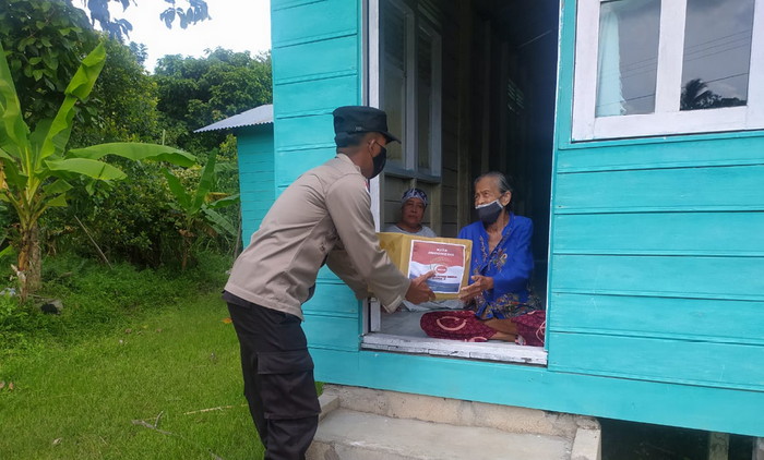Bursakota.co.id, Natuna – Kapolres Natuna melalui Sat Binmas Polree Natuna bersama menyambangi masyarakat Kelurahan Bandarsyah untuk memberikan bantuan paket sembako yang dimana saat ini di Kabupaten Natuna berlakukan PPKM Mikro level 3, Senin (02/08/2021).
