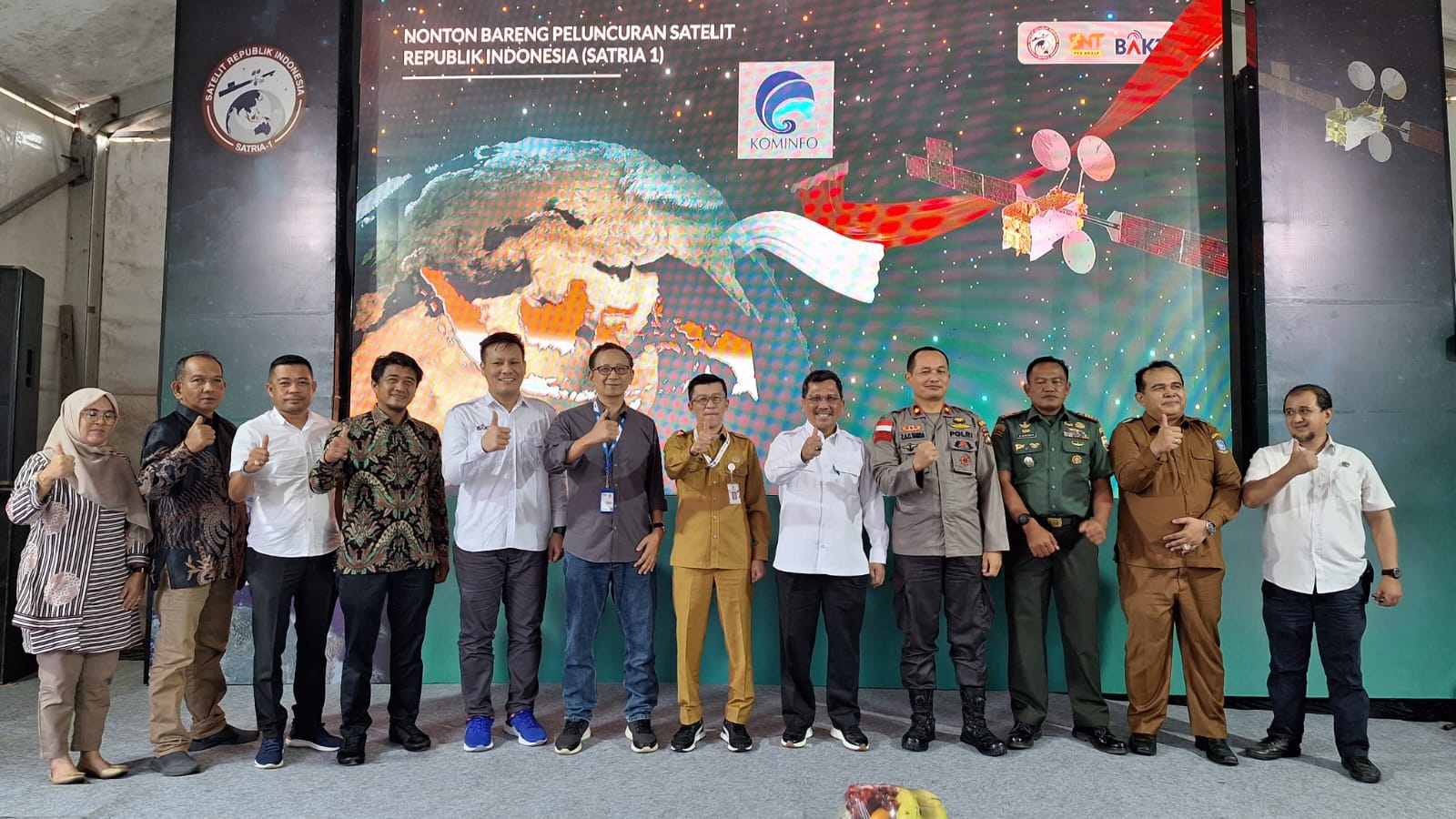 Acara nonton bareng peluncuran Satelit Satria-1 di lokasi stasiun bumi Batam dihadiri oleh Kepala Divisi Hukum BAKTI Kementerian Kominfo, GM Site Infrastruktur Pacifik Satelit Nusantara, Kepala Dinas Komunikasi dan Informatika Kepulauan Riau, Kepala Dinas Komunikasi dan Informatika Kabupaten/Kota se-Kepulauan Riau, Kapolsek Sekupang, Danramil Sekupang, dan para Pelajar SMA Negeri 1 Kota Batam serta jajaran staf teknis Bakti Kementerian Komunikasi dan Informatika.