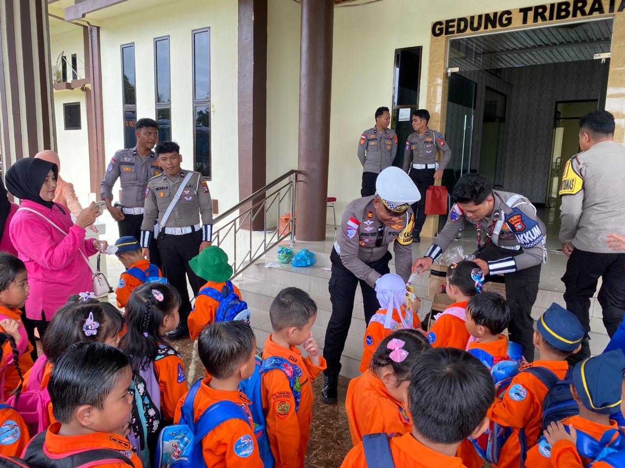 Di akhir kegiatan, Polres Natuna membagikan 130 bingkisan snack sebagai bentuk perhatian kepada anak-anak.