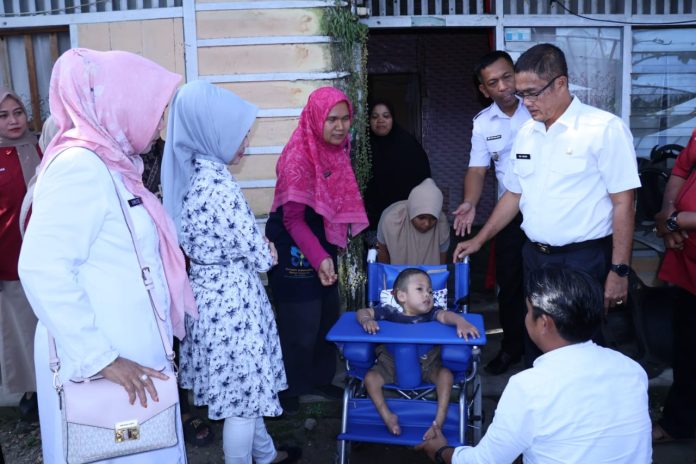 Bursakota.co.id, Payakumbuh – Penjabat (Pj) Wali Kota Payakumbuh Suprayitno yang diwakili Sekretaris Daerah Rida Ananda bersama Lembaga Koordinasi Kesejahteraan Sosial (LKKS) Kota Payakumbuh memberikan bantuan kursi roda kepada anak penderita Hydrosefalus dan Kelainan Tulang Punggung di Kelurah Bulakan Balaikandi, Kecamatan Payakumbuh Barat, Rabu (24/7/2024).
