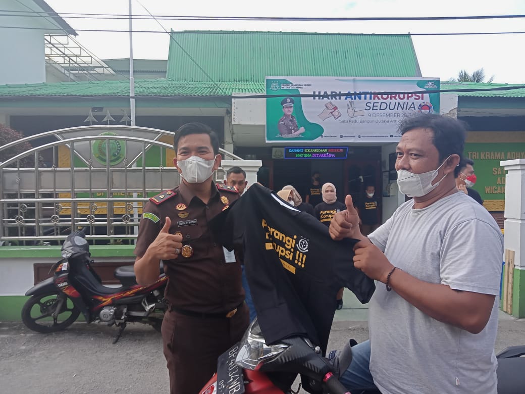 Bursakota.co. id, Anambas – Kepala Cabang Kejaksaan Negeri Natuna Di Tarempa (Kacabjari) Roy Huffington Harahap membagikan Kaos dan stiker dalam rangka memeperingati Hari Anti Korupsi Sedunia (HAKORDIA), Kamis (09/12/2021).