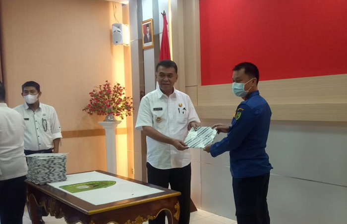 Bursakota.co.id, Natuna – Bupati Natuna, Wan Siswandi, melakukan menyerahkan Dokumen Pelaksanaan Anggaran (DPA) ke masing-masing Organisasi Perangkat Daerah (OPD) dilingkungan Pemerintah Daerah Kabupaten Natuna untuk tahun anggaran 2022, di Ruang Rapat Lantai II Kantor Bupati Natuna, Bukit Arai, Rabu (12/01/2022) siang.