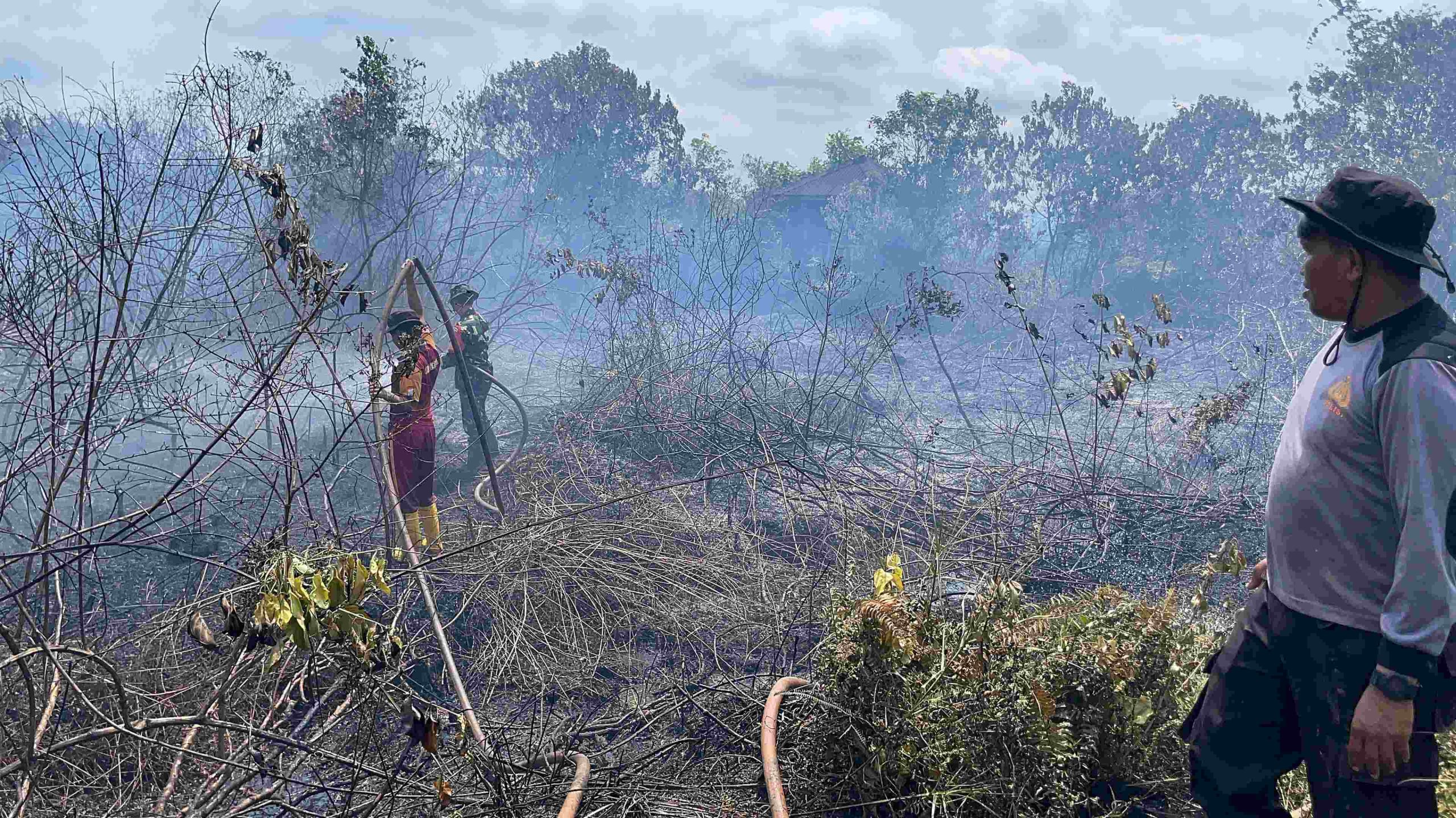 Dugaan sementara, kebakaran terjadi akibat faktor cuaca panas atau kondisi ekstrem yang menyebabkan lahan mudah terbakar.