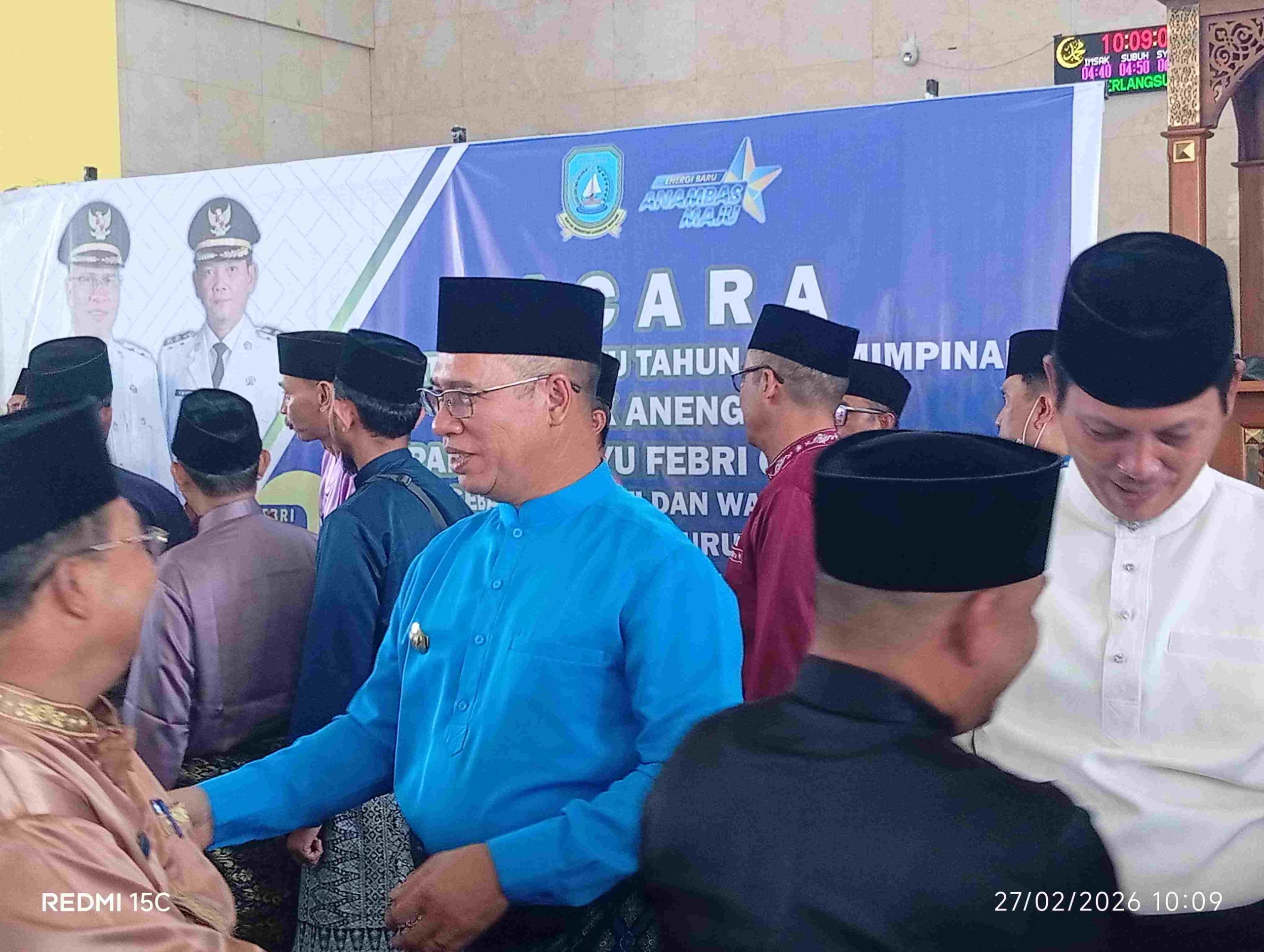 Bursakota.co.id, Anambas – Setahun memimpin Kabupaten Kepulauan Anambas, Bupati Aneng dan Wakil Bupati Raja Bayu menggelar silaturahmi bersama ratusan aparatur sipil negara (ASN) di Masjid Agung Baitul Makmur, Kecamatan Siantan, Jumat (27/2/2026).