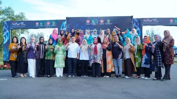 Turut hadir dalam kegiatan tersebut Bupati Lingga Muhammad Nizar, didampingi Ketua TP-PKK Kabupaten Lingga Maratusholiha Nizar, serta Ketua Dekranasda Kota Batam Hj. Erlita Amsakar Achmad dan Ketua Dekranasda Kabupaten Lingga Hj. Feby Sarianty Novrizal.