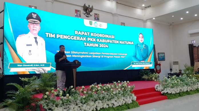 Bupati Natuna, Wan Siswandi, secara resmi membuka Rapat Koordinasi TP-PKK Kabupaten Natuna Tahun 2024, yang kali ini mengusung tema “Eratkan Silaturahmi, Lanjutkan Pemberdayaan Keluarga dengan Meningkatkan Sinergi 10 Program Pokok PKK”.