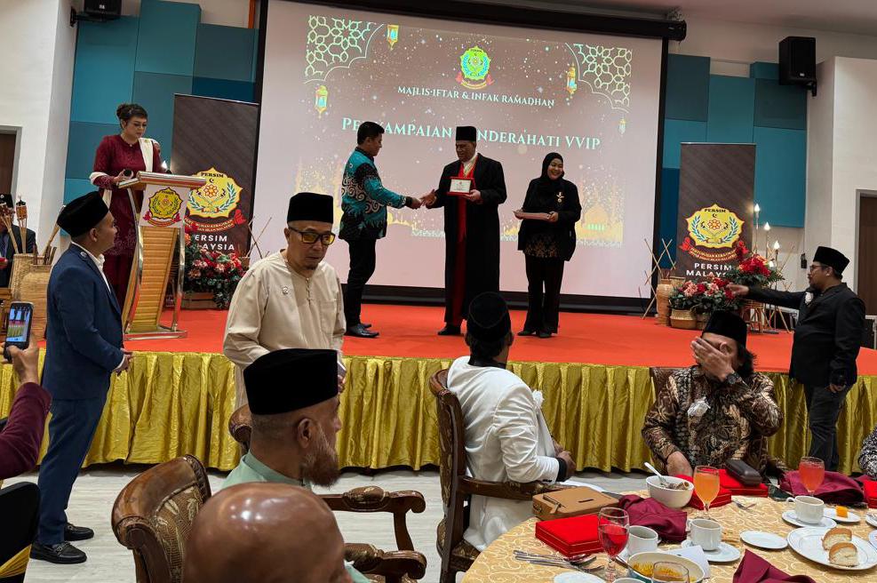 JOHOR BAHRU – Delegasi Serikat Media Siber Indonesia (SMSI) Provinsi Kepulauan Riau menerima penghargaan dari Pertubuhan Kebajikan Sinar Insan Islam Malaysia (Persim) dalam acara buka puasa bersama yang digelar di Dewan Kenanga, Majlis Bandaraya TMIYC Iskandar Puteri, Johor Bahru, Sabtu (7/3/2026).