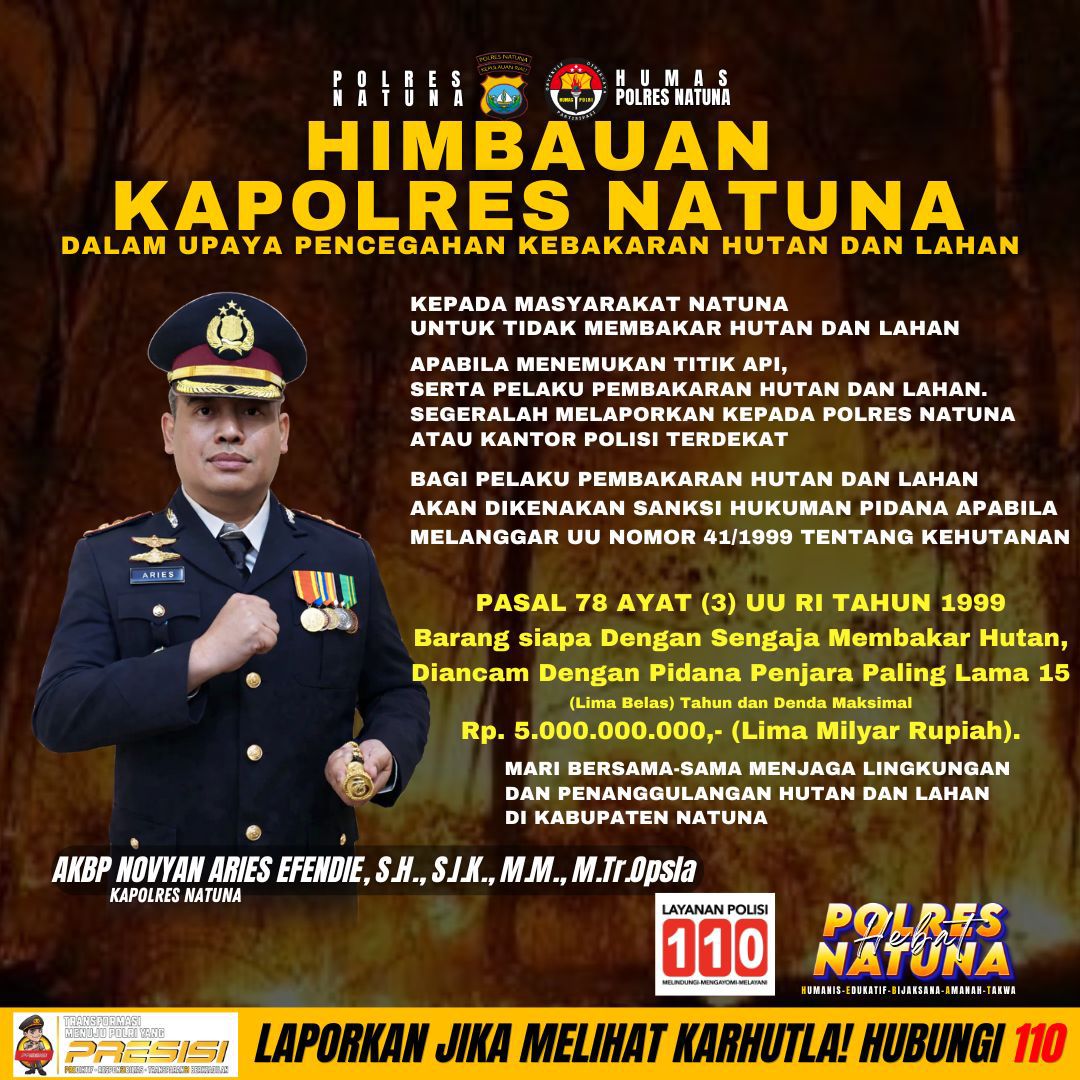 Kapolres Natuna AKBP Novyan Aries Efendie, S.H., S.I.K., M.M., M.Tr.Opsla menegaskan bahwa pencegahan karhutla menjadi tanggung jawab bersama.