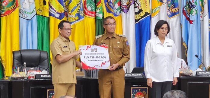 Penghargaan tersebut, langsung diberikan oleh Mendagri Muhammad Tito Karnavian dan Menkeu Sri Mulyani kepada Penjabat (Pj). Wali Kota Payakumbuh Rida Ananda di Sasana Bhakti Praja, Kantor Pusat Kementerian Dalam Negeri, Jakarta Pusat, Senin (31/72023).