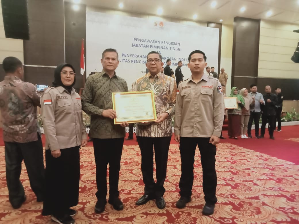 Penghargaan tersebut diserahkan oleh Komisioner KASN Bidang Pengisian JPT Agustinus Fatem dan diterima langsung oleh Penjabat (Pj) Sekda Herman Azmar di dampingi Kepala Badan Kepegawaian dan Pengembangan Sumber Daya Manusia (BKPSDM) Adrian Wahyudi, pada Selasa, 27 Februari 2024 di Hotel Grand Suka Pekanbaru.