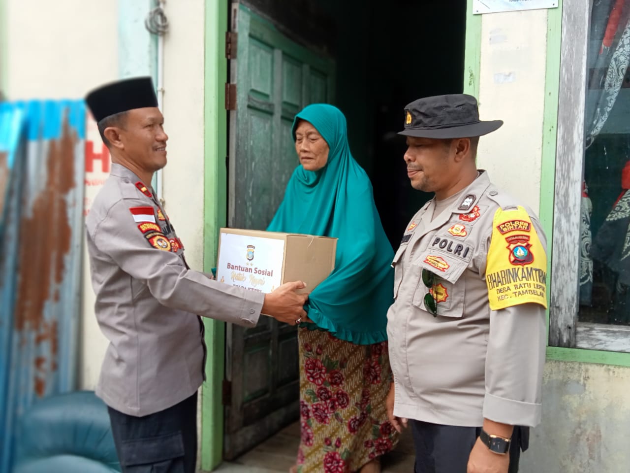 Kapolsek Tambelan Ipda Taufik pada hari ini memberikan bantuan sembako yang berisikan bahan pokok penting (Bapokting) kepada masyarakat lansia, Warga cacat dan masyarakat kurang mampu di desa Kampung Melayu Kecamatan Tambelan sehubungan dengan adanya kenaikan harga beberapa bahan pokok penting juga mempengaruhi perekonomian di Tambelan, Senin (3/4/2023).