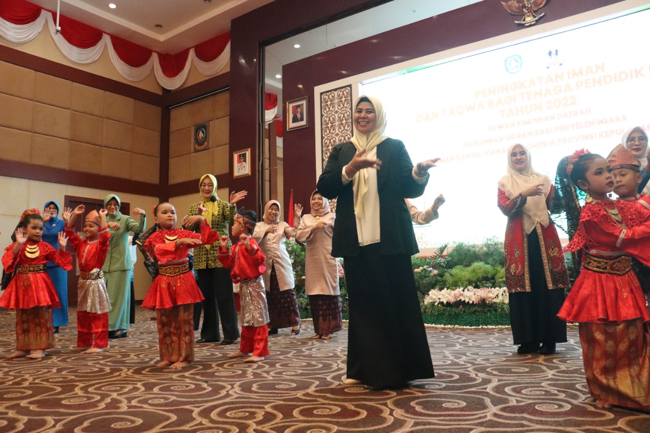Dalam sambutannya, Dewi Ansar yang juga Bunda Paud Provinsi Kepri mengatakan bahwa kegiatan yang diadakan GOPTKI Kepri ini bertujuan memberikan pengetahuan dan wawasan tentang Iman dan Taqwa mengenai perkembangan Paud/TK bagi kalangan pendidik.