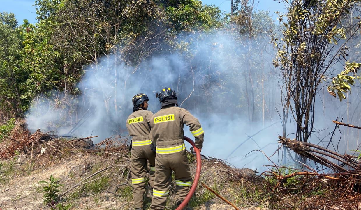 Tim Karhutla Polda Kepri Lakukan Pemadaman Kebakaran Lahan di Pantai Nirwana dan Bukit Daeng
