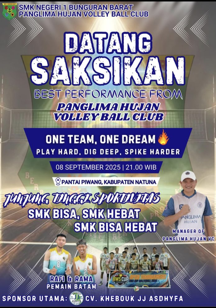 Team panglima hujan SMKN 1 Bunguran Barat merupakan Pioneer yang akan menjadikan kolaborasi pemain terrain yang ada di sedanau khususnya bahkan Bunguran Barat umumnya.