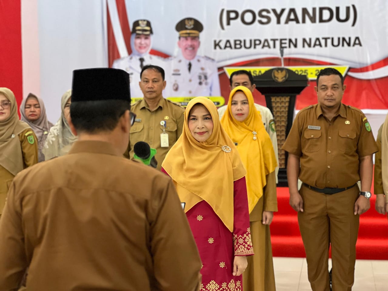 Ratusan pasang mata menyaksikan momen penting: pelantikan Tim Pembina Pos Pelayanan Terpadu (Posyandu) Kabupaten Natuna masa bakti 2025–2030.