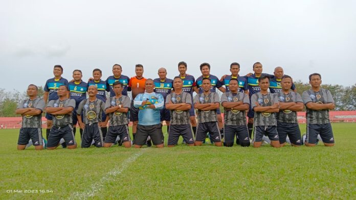Ket Foto : Tournament sepak bola Old Crack PWI yang digelar dalam rangka Hari Pers Nasional sekaligus hari jadi Kabupaten Asahan di Stadion Mutiara Kisaran berlangsung seru Rabu (01/03/2023) sore.