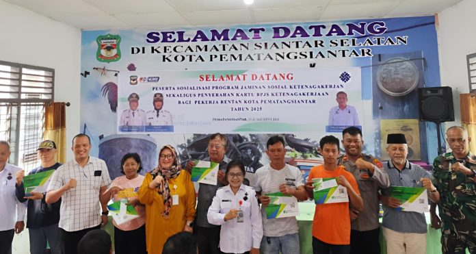 Penyerahan simbolis kartu juga diberikan kepada 6 orang mewakili 481 pekerja rentan di lingkungan Kecamatan Siantar Selatan yang telah didaftarkan.