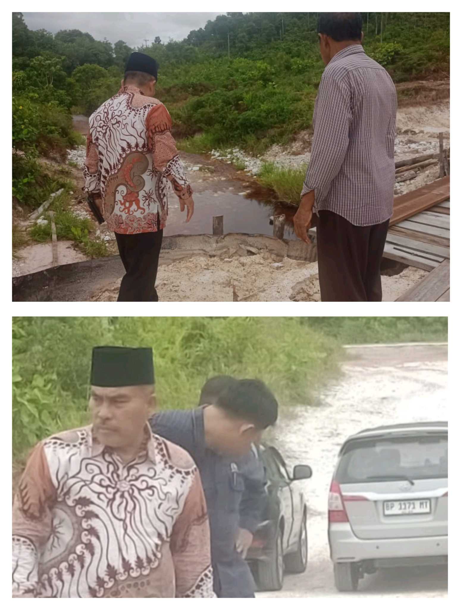 FOTO : Anggota DPRD Provinsi Kepulauan Riau (Kepri) dari Daerah Pemilihan (Dapil) Natuna–Anambas, H. Mustamin Bakri, melakukan peninjauan langsung ke lokasi jembatan jalan masuk menuju Desa Pian Tengah dan Desa Mekar Jaya, Kecamatan Bunguran Barat, pada Senin (8/9/2025).