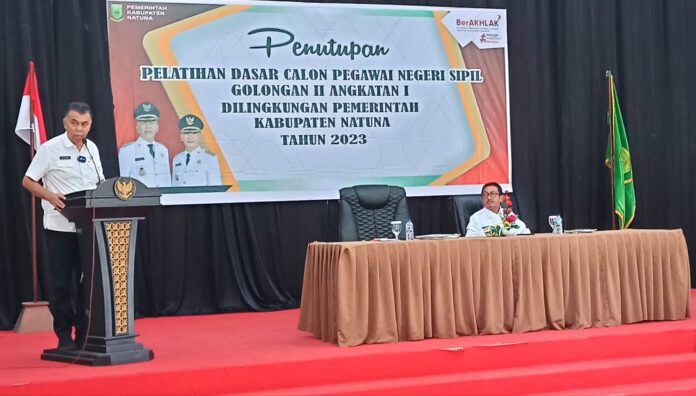 Bursakota.co.id, Natuna – Bupati Natuna, Wan Siswandi secara resmi menutup Pelatihan Dasar Calon Pegawai Negeri Sipil Golongan II Angkatan I Dilingkungan Pemerintah Kabupaten Natuna Tahun 2023.