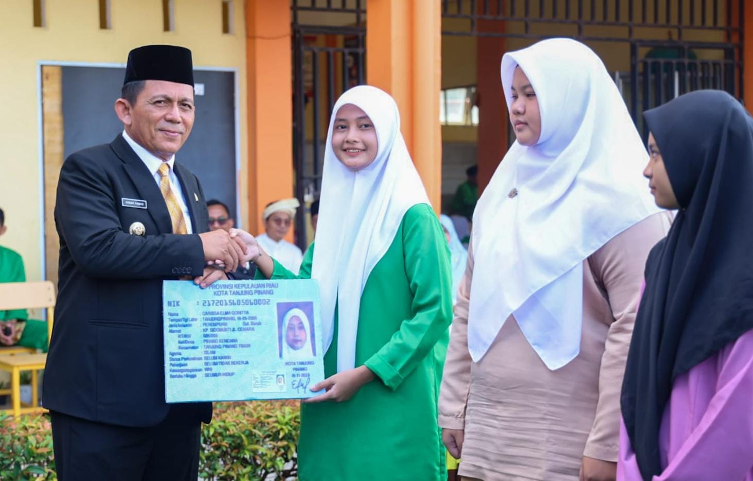 Bertempat di SMA Negeri 7 Tanjungpinang, Jumat (26/1) Gubernur Kepri Ansar Ahmad menyerahkan secara simbolis KTP-El kepada perwakilan siswa.