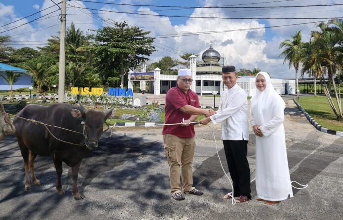 Bursakota.co.id, Natuna – Komandan Lanud Raden Sadjad (Danlanud RSA) Kolonel Pnb Jajang Setiawan, S.M., M.Han., PSC(J)., didampingi Ketua PIA Ardhya Garini Cabang 17/D.I Lanud RSA, Ny. Novi Jajang Setiawan menyerahkan hewan Kurban dari Kepala Staf Angkatan Udara (Kasau) Marsekal TNI Fadjar Prasetyo, S.E., M.P.P., CSFA., Kamis(29/6/2023). Penyerahan hewan kurban dilaksanakan usai Sholat Idul Adha 1444 H/2023 M.