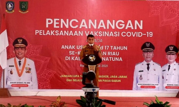 Sementara Gubernur Kepri Ansar Ahmad hadir pada saat itu sekaligus ingin meninjau langsung pelaksanaan vaksinasi massal perdana anak usia 12-17 tahun.