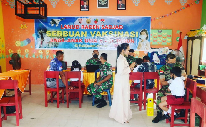 Natuna – Wakil Bupati Natuna, Rodhial Huda meninjau langsung serbuan vaksinasi anak 6 – 11 tahun yang digelar oleh Rumah Sakit TNI Angkatan Udara (RSAU) dr. Yuniati Wisma Karyani Lanud Raden Sadjad di Sekolah Dasar Negeri (SDN) 005 Sepempang, Kecamatan Bunguran Timur, Kabupaten Natuna, Provinsi Kepulauan Riau, Senin (10/1/2022).