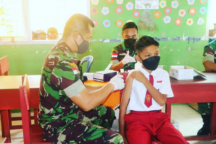 “Hari ini tim Nakes RSAU melaksanakan serbuan vaksinasi di SDN 005 Desa Sepempang dengan menerjun 10 orang Nakes untuk menyukseskan kegiatan vaksinasi ini,” ujarnya.