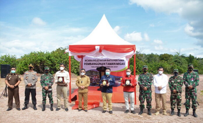 Bursakota.co.id, Tanjungpinang – Wakil Komandan Pangkalan Utama TNI Angkatan Laut IV (Wadanlantamal IV) Tanjungpinang Kolonel Marinir Andi Rahmat M, bersama Sekda Provinsi Kepri Dr. H.T.S.Arif Fadillah,S.Sos., M.Si., serta unsur Forkopimda Provinsi Kepri dan Perwakilan SKK Migas ikuti acara peletakan batu pertama Taman Migas yang berlangsung di Bundaran Tugu Provinsi Kepri Dompak Tanjungpinang Kepri, Senin pagi (08/2/2021).