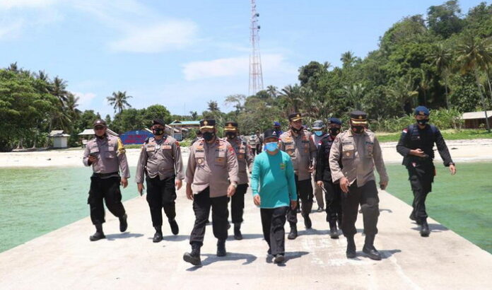 Kemudian kegiatan dilanjutkan dengan mengunjungi Pulau Berhala Kecamatan Singkep Selatan guna meninjau Pos Polisi di wilayah tersebut dan melaksanakan bakti sosial dengan memberi bantuan paket sembako kepada masyarakat Desa Berhala yang kurang mampu yang terdampak dari pandemi Covid-19.