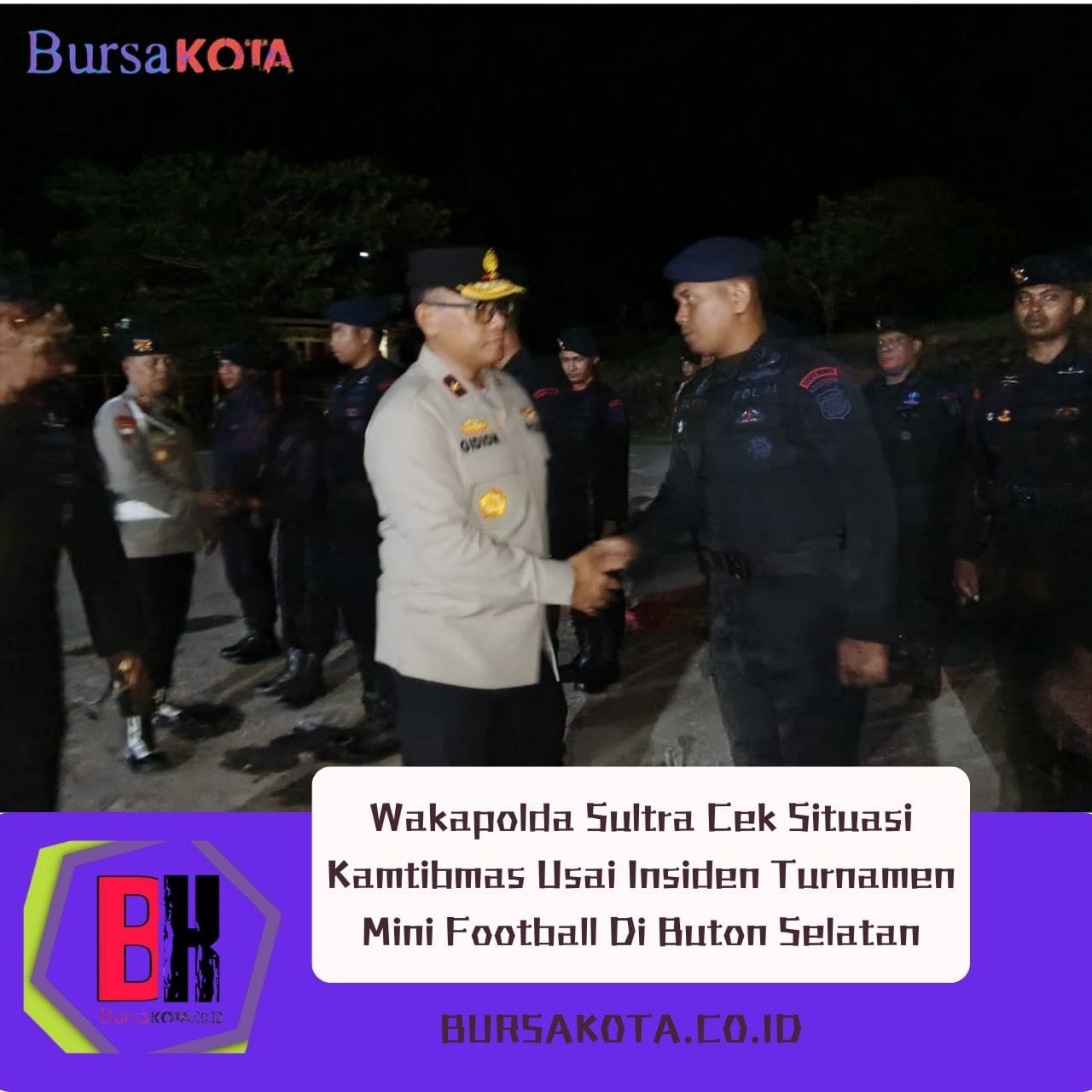 Bursakota.com.id, Buton Selatan – Wakil Kepala Kepolisian Daerah (Wakapolda) Sulawesi Tenggara, Brigjen Pol. Dr. Gidion Arif Setyawan, S.I.K., S.H., M.Hum., melakukan kunjungan kerja ke wilayah hukum Polres Buton, Senin malam (5/1/2026), guna memantau langsung situasi keamanan dan ketertiban masyarakat (kamtibmas) pasca insiden keributan yang melibatkan oknum anggota Yon TP 871 La Maindo dan Batalyon B Pelopor Brimob Batauga.