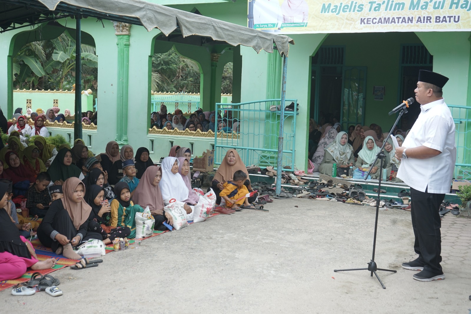 Tampak hadir Ketua I Bidang Pembinaan Karekater Keluarga TP PKK Kabupaten Asahan, Camat Air Batu, Kepala Desa serta para Jamaah yang lainnya