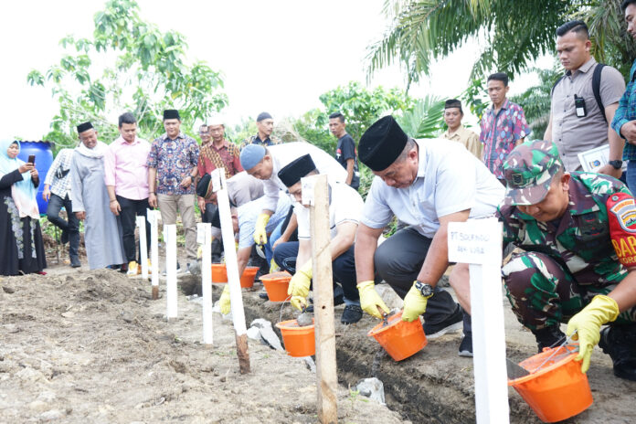 Bursakota.co.id, Asahan – Wakil Bupati Asahan di dampingi Asisten III Bidang Administrasi Umum, Kapolres Asahan, Ketua DPRD Provinsi Sumatera Utara, Kepala Dinas Lingkungan Hidup, Camat Aek Kuasan, Ketua MUI Kecamatan Aek Kuasan, Ketua Imtaq Aek Kuasan, Perwakilan Pimpinan PT. Socfindo dan Tokoh Masyarakat, Tokoh Agama Kecamatan Aek Kuasan melakukan peletakan batu pertama pembangunan Musholla Siti Amin yang berada di Kelurahan Aek Loba Pekan Kecamatan Aek Kuasan, Minggu (08/01/23).