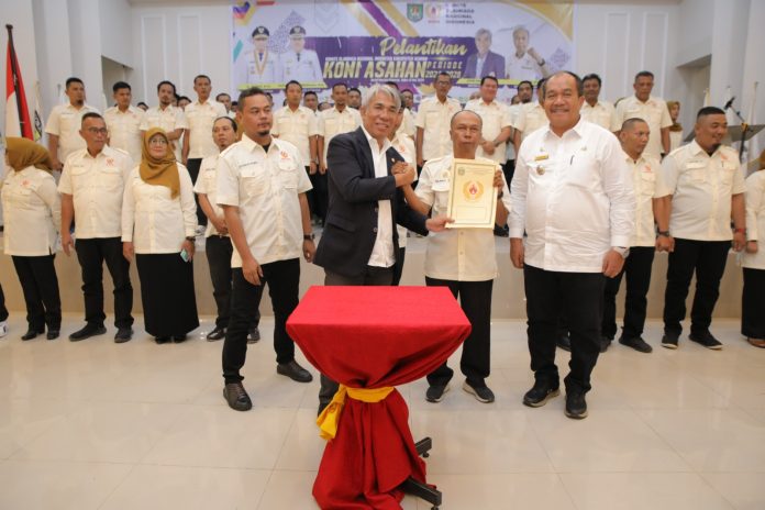 Bursakota.co.id, Asahan – Ketua KONI Sumatera Utara (SUMUT) melantik pengurus KONI Asahan periode 2024-2028 di Aula Hotel Marina Kisaran, Rabu (15/05/2024).
