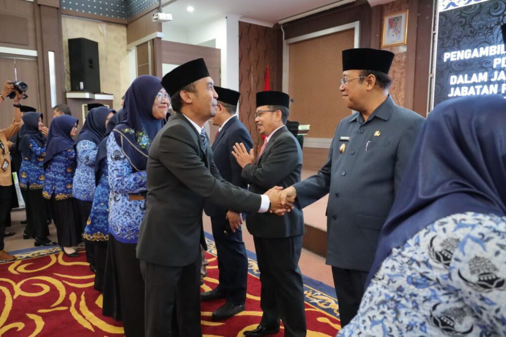 Pelantikan dan Pengambilan Sumpah Jabatan 110 Pegawai Negeri Sipil di Lingkungan Pemerintah Daerah Kabupaten Karimun turut dihadiri Sekretaris Daerah Karimun, H. Muhammad Firmansyah dan sejumlah Kepala Organisasi Perangkat Daerah Karimun