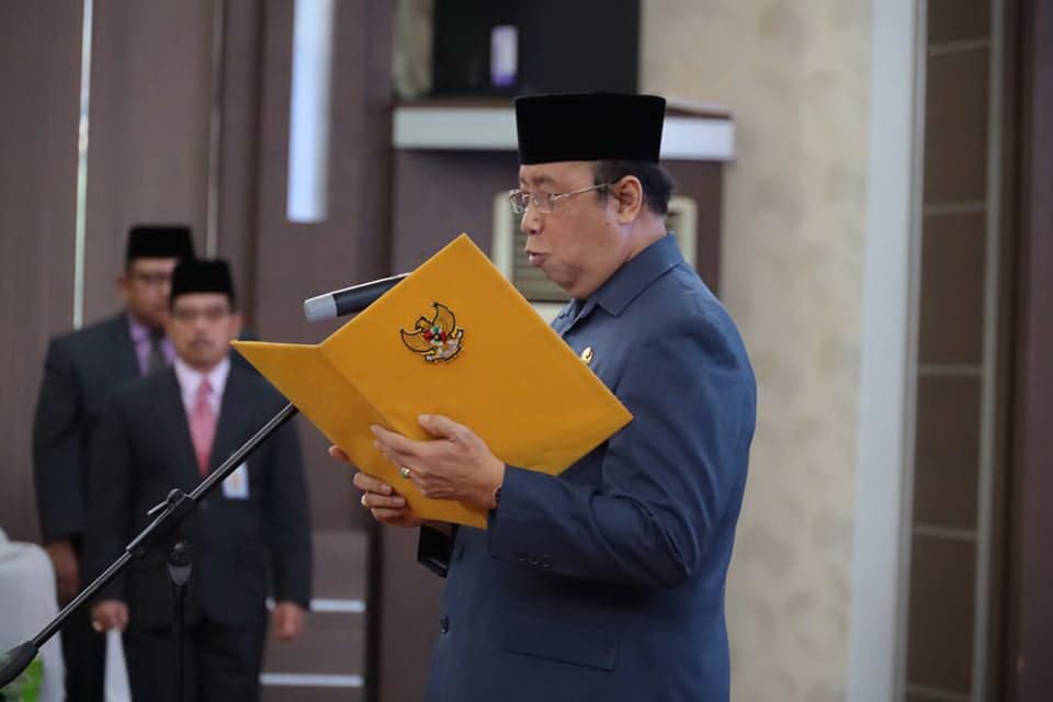 Pelantikan dan Pengambilan Sumpah Jabatan 110 Pegawai Negeri Sipil di Lingkungan Pemerintah Daerah Kabupaten Karimun turut dihadiri Sekretaris Daerah Karimun, H. Muhammad Firmansyah dan sejumlah Kepala Organisasi Perangkat Daerah Karimun