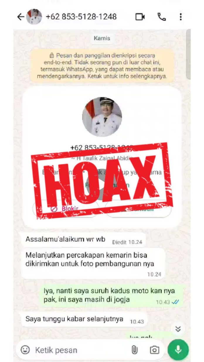 “Namun kali ini, pelaku melakukan dengan modus yang baru, dan kita tidak tahu apakah pelaku benar-benar ingin melakukan penipuan atau ada modus lainnya”, ujar Kadis Kominfo Syamsuddin di ruang kerjanya, Selasa (4/6/2024).
