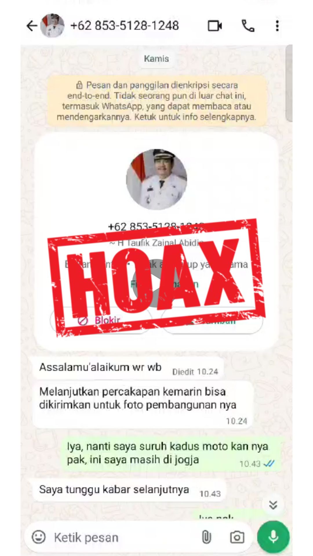 Tak ingin berlarut, Hernanto langsung melakukan kroscek terhadap rekening BKM Masjid serta keabsahan identitas pelaku, dan mendapatkan informasi bahwa faktanya, akun atau nomor WhatsApp tersebut adalah akun palsu dan bukanlah milik Wakil Bupati Asahan Taufik Zainal Abidin, S.Sos, M.Si, dan tidak pernah ada dana yang masuk seperti penuturan pelaku ke rekening BKM Masjid tersebut.