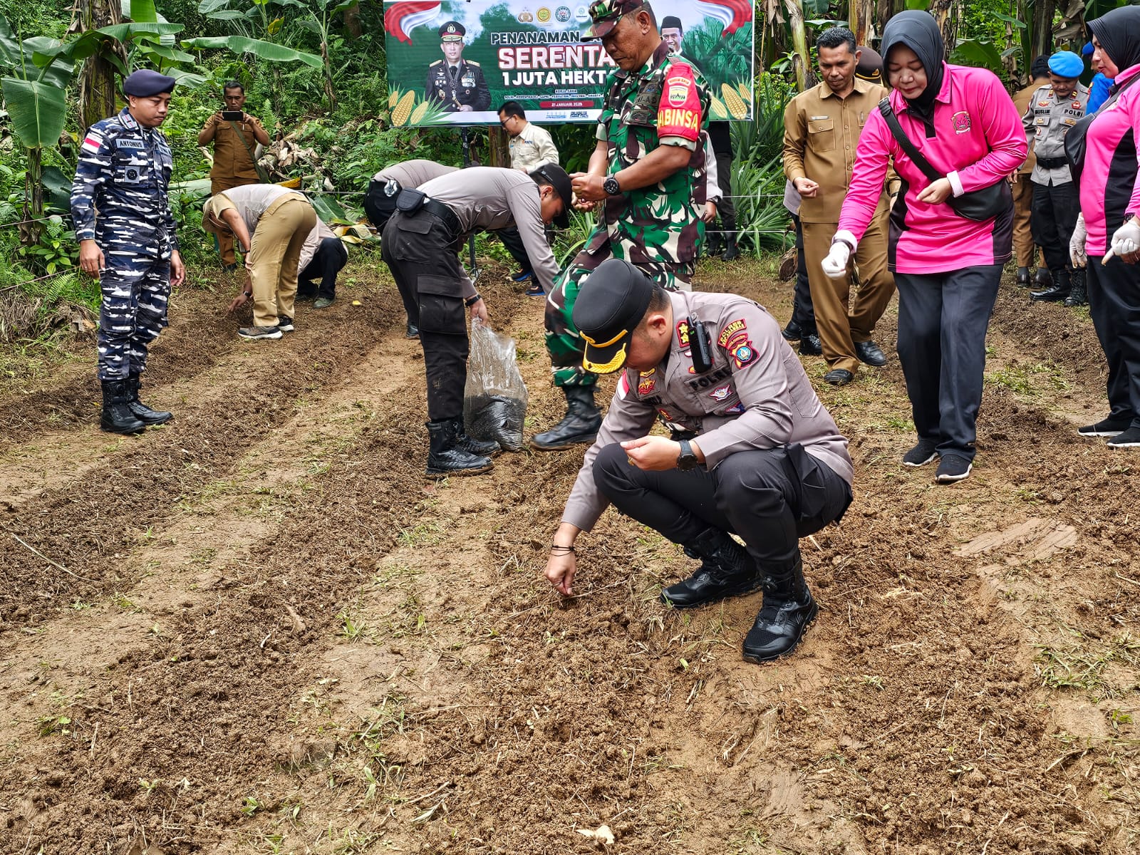 Ket Foto : Polres Kepulauan Anambas menggelar kegiatan Penanaman Jagung Serentak 1 Juta Hektar bertempat di Jl. M. Thamrin, Dusun I Desa Tiangau, Kecamatan Siantan Selatan, Kabupaten Kepulauan Anambas, Selasa (21/01/2025)