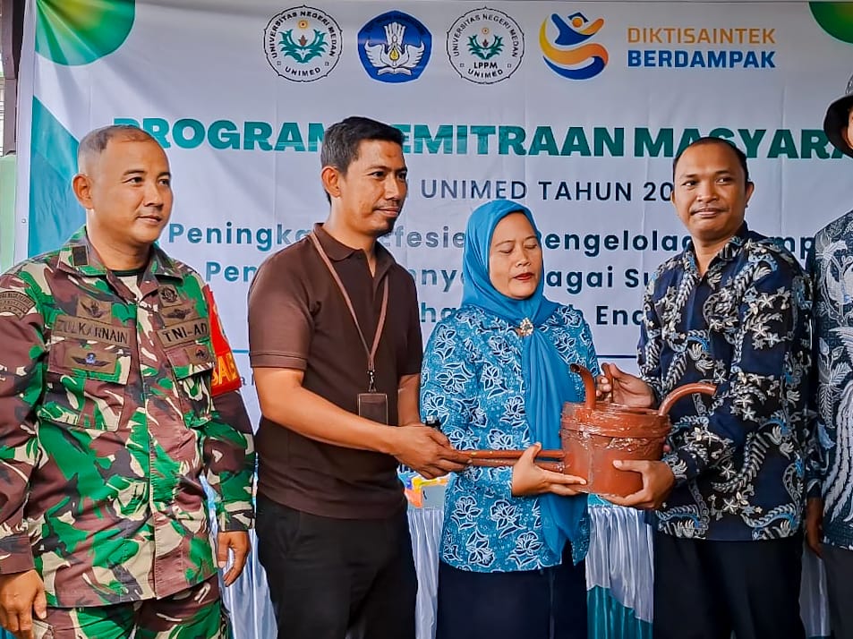 “Kita bagikan tong sampah kepada masyarakat untuk memulai memilah sampah antara organik dan non-organik”, kata Syawaludin dihadapan yang hadir diantaranya Pembimbing LPPM Unimed, Satria Mihardi, Penggiat lingkungan dan kelompok masyarakat.