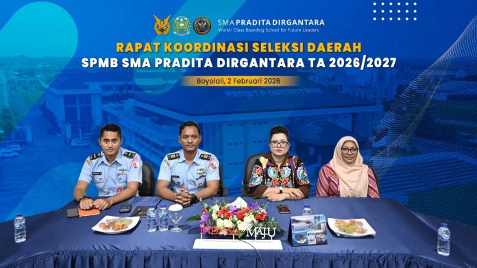 Natuna – Ketua Umum Yasarini, Ibu Isa M. Tonny Harjono, membuka Rapat Koordinasi Seleksi Daerah Sistem Penerimaan Murid Baru SMA Pradita Dirgantara Tahun Ajaran 2026/2027 secara daring dari Jakarta, Senin (2/2/2026).